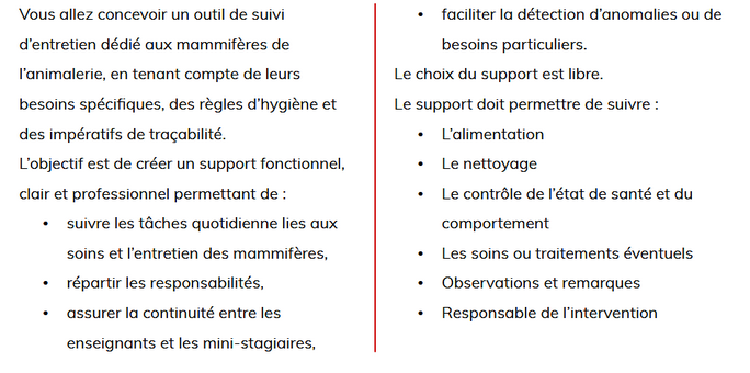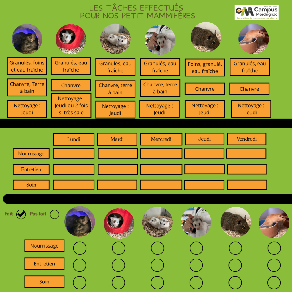Les tâches à effectuer pour les petits mammifères ! CCF